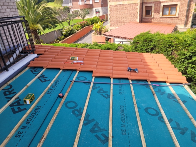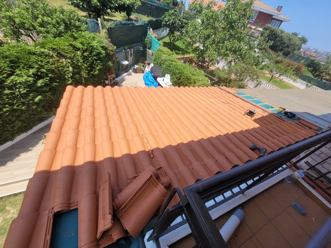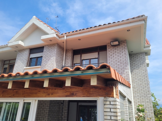 Se ejecutan los remates del tejado, cuidando especialmente el acabado frontal y los laterales. Se incorpora un sistema de drenaje eficiente mediante vierteaguas y se asegura una transición limpia y funcional entre la cubierta y la fachada, mejorando tanto la estética como la evacuación del agua.